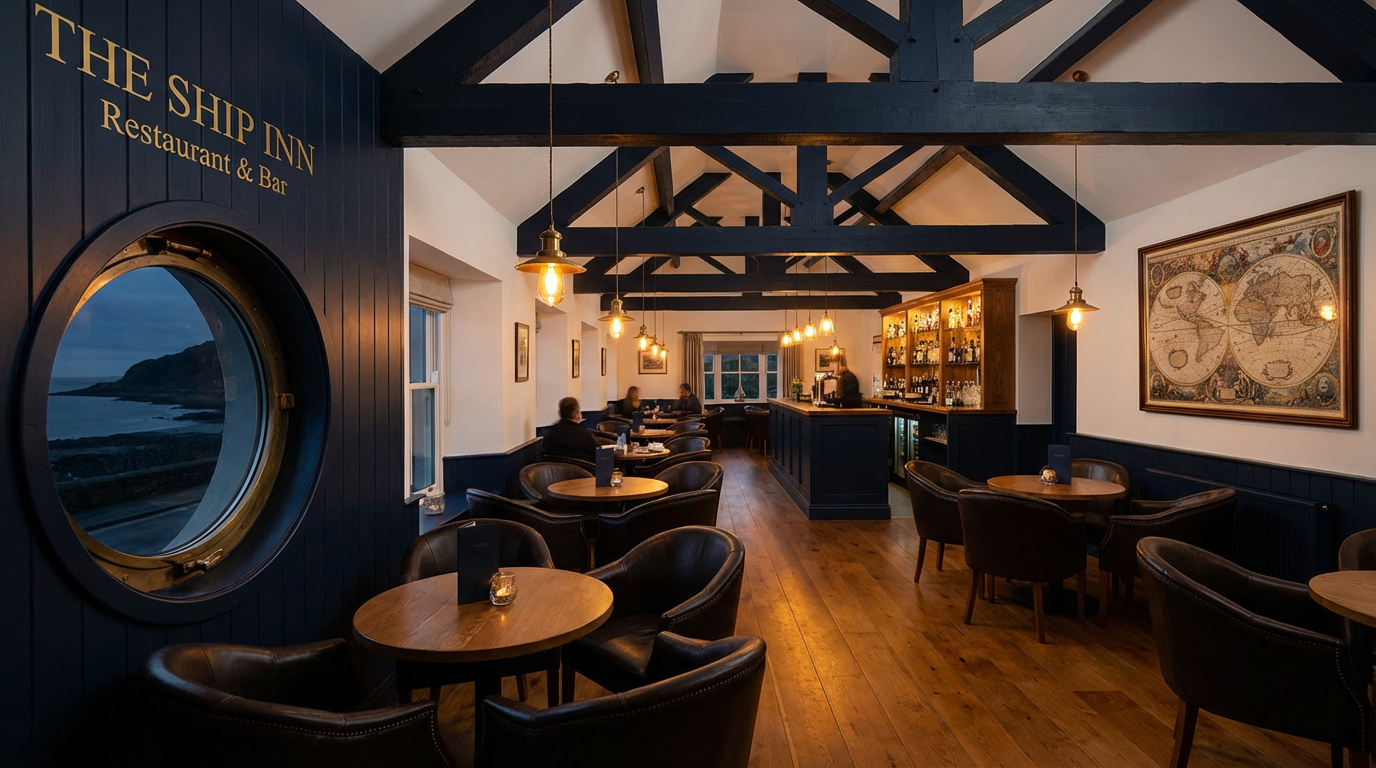 The Ship Inn is designed around soft lighting, natural textures, and a bar that's both welcoming on a quiet Tuesday and a busy weekend. The images below give you an idea of the space and atmosphere.